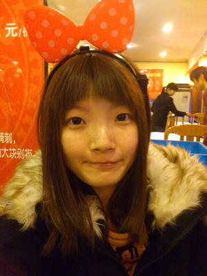 买了个蝴蝶结的头箍带着玩