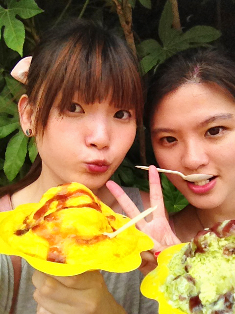 我的是芒果 我妹的是抹茶 上面是蓝莓酱 味道还可以的啦