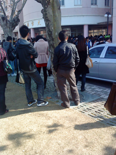 进考场的时候看到一个干净的美少年 但是人潮太拥挤 阿拉就失散了 晦气!!