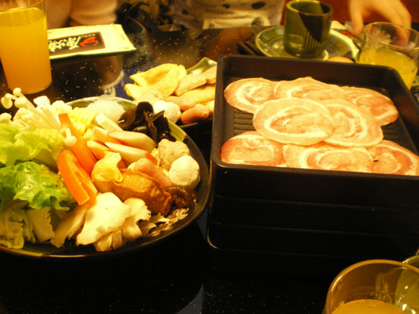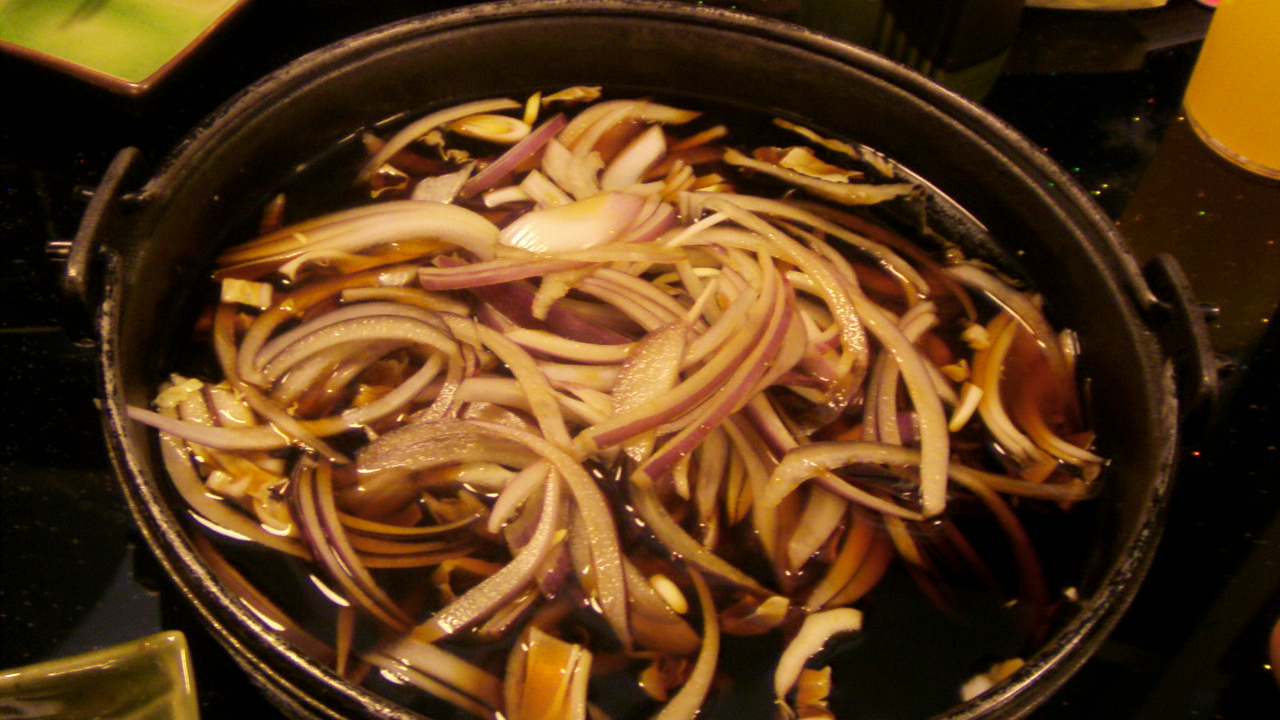 刚上来的寿喜锅 好多洋葱 我爱洋葱!!